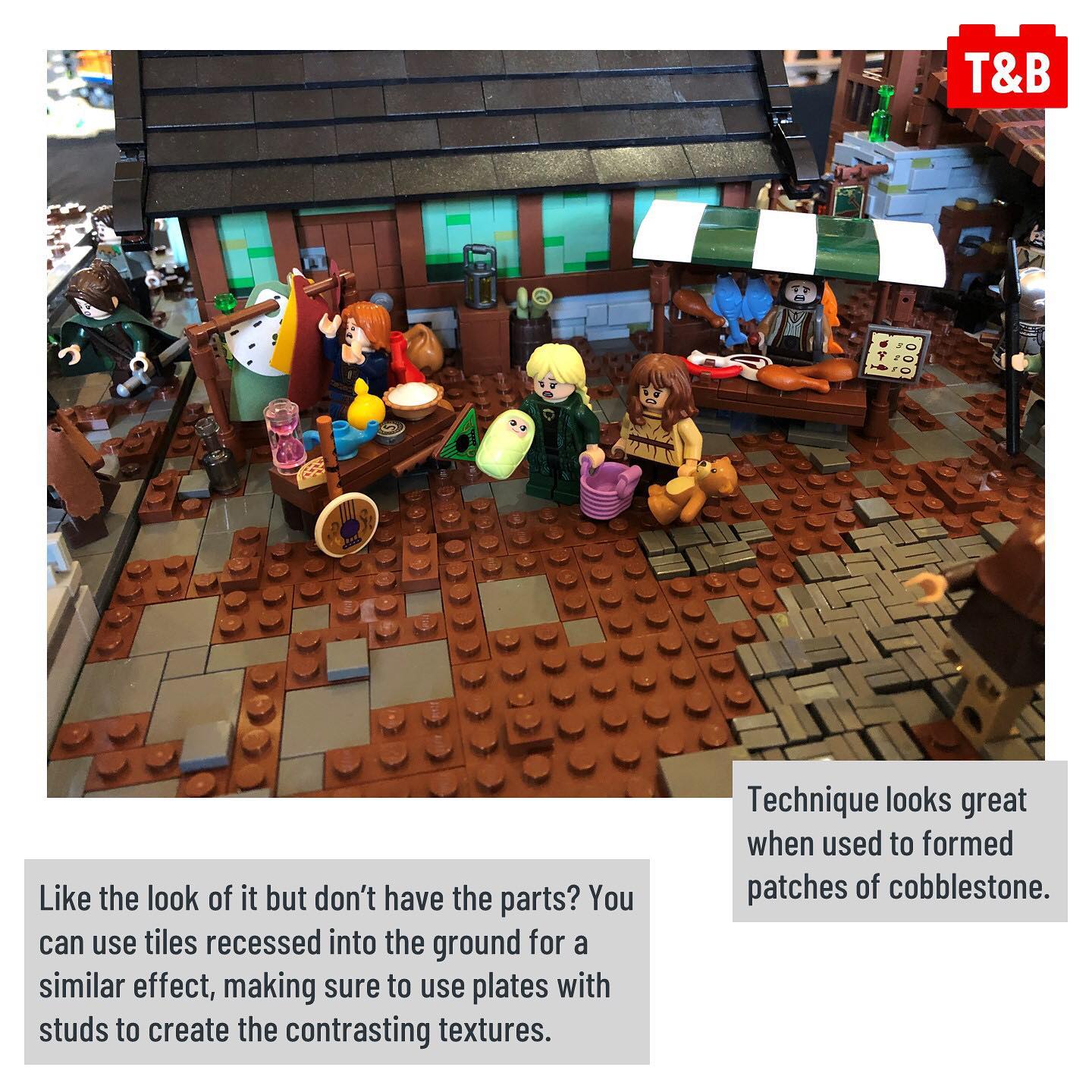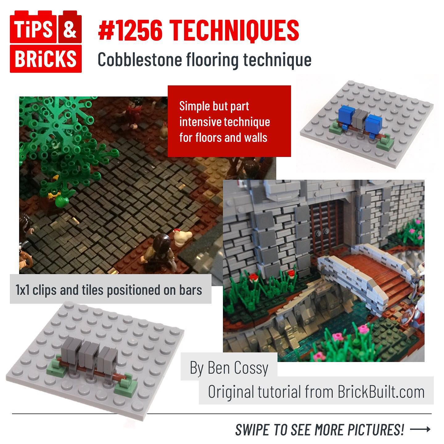 Today we’re sharing an awesome cobblestone flooring technique that create an uneven, natural texture. @ben.cossy used 1×1 clips and tiles positioned on bars in this simple but part intensive technique, which can also be used for walls if you use SNOT bricks to position the pieces sideways.