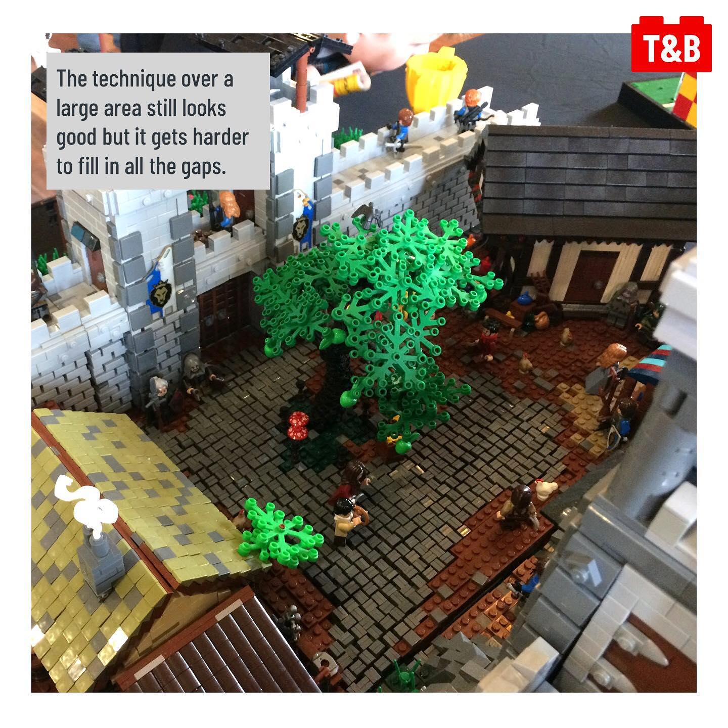 Like the look of the technique but don’t have the parts? You can use tiles recessed into the ground for a similar effect, making sure to use plates with studs to create the contrasting textures.